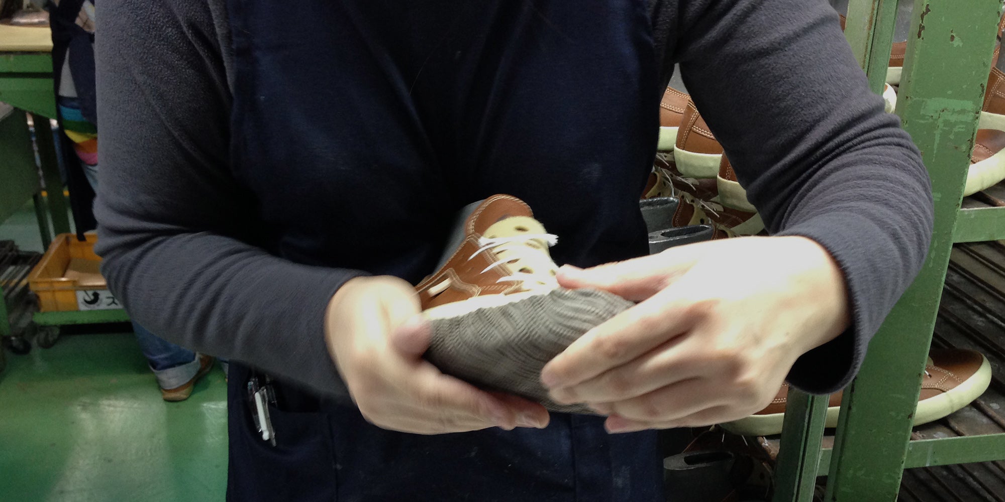 We take care in balancing the fitting feel, such as a comfortable foot feel, and the design. To create a shoe which is attractive and feels comfortable when you wear it, great care must be taken because even a slight difference may rub the foot and cause pain etc.